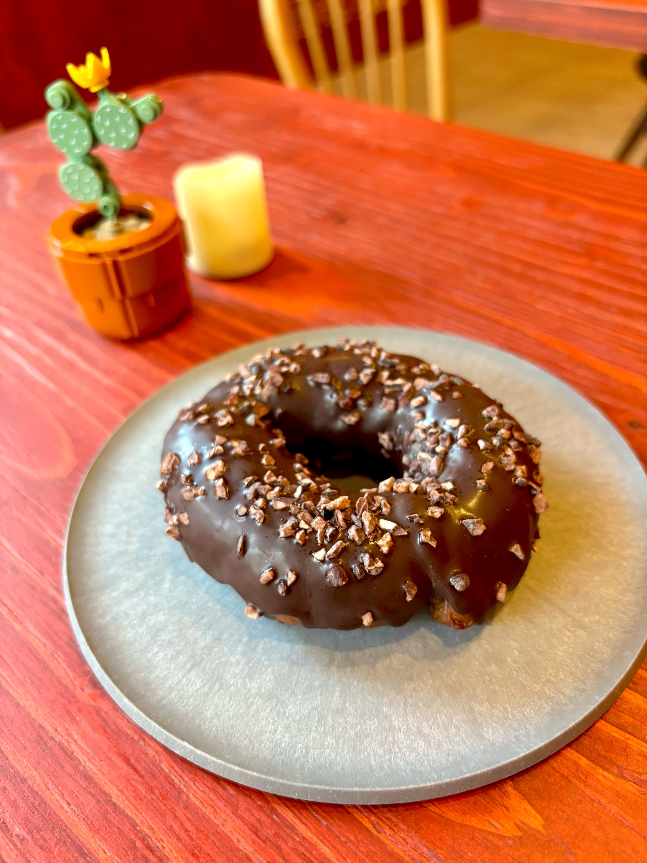 フランス産カカオが入った生地にはチョコチップとオレンジピールを混ぜ込み、上にチョコと粗挽きローストカカオ豆をトッピングして食感も楽しめます。チョコ好きな方はぜひお召し上がりください♪